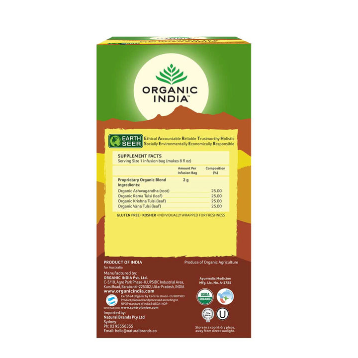 Organic India Ashwagandha Tea Tulsi Green Tea Ashwagandha is a unique & delicately balanced powerhouse of energy and vitality which has been carefully blended with the refreshing flavour of lemongrass...